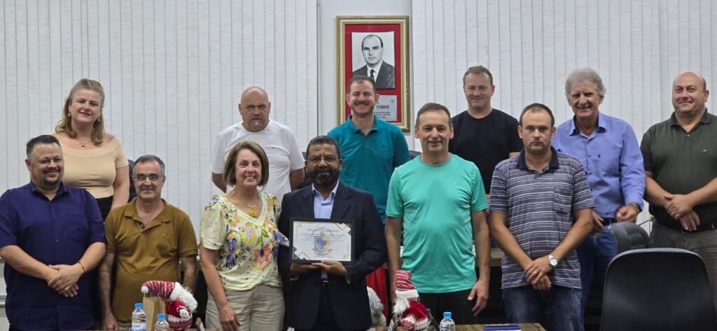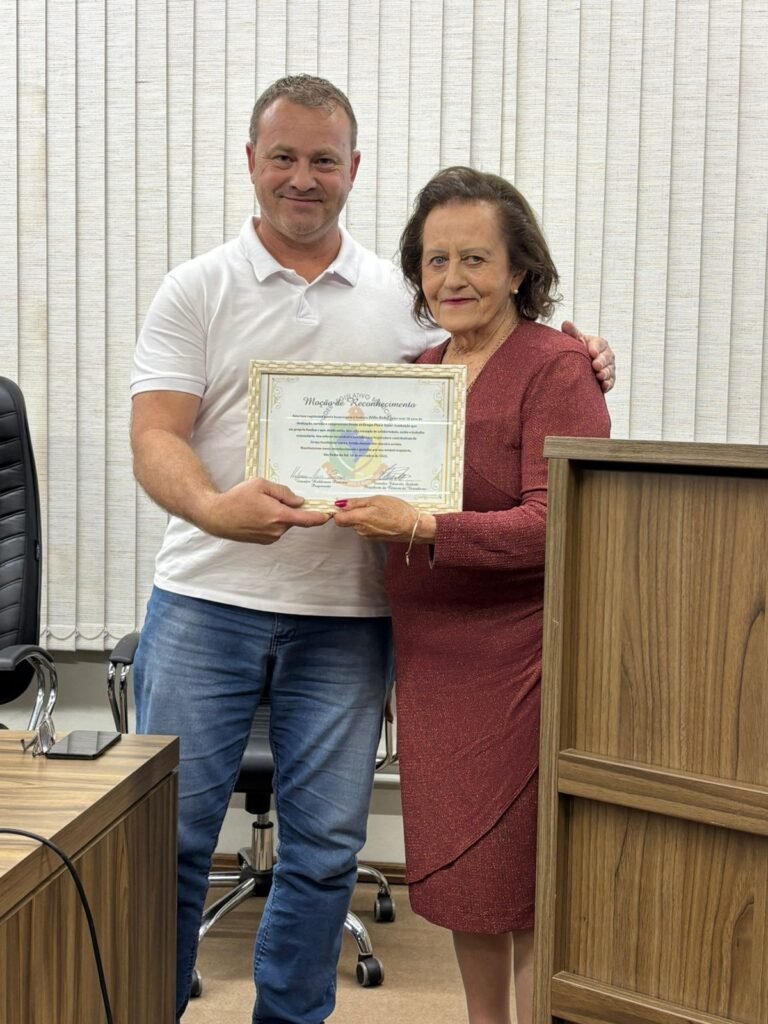 A Câmara de Vereadores entregou na última terça-feira (07/10/2025), uma Moção de Agradecimento ao Sr. Hélio Ari Einloft, em reconhecimento pelos 19 anos de serviços prestados a Prefeitura de São Pedro do Sul, mais especificamente no parque de máquinas. Moção essa proposta pelo Vereador Alecssander Oesterreich e aprovada pelo demais vereadores.