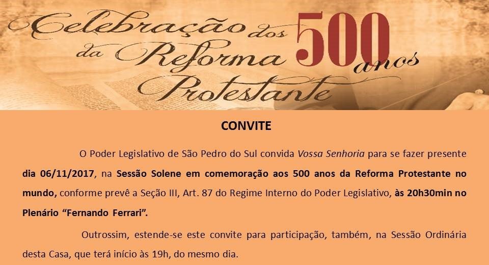 Convite para celebração dos 500 anos da reforma protestante