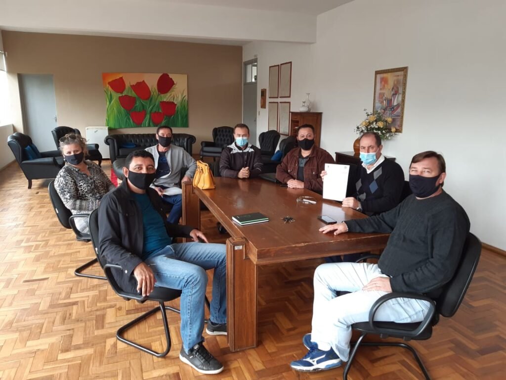Os vereadores Everson Gonçalves (MDB), Fábio Parnov (MDB), José Claudio Moura Alves (PTB), Kiko Panciera (DEM), Graziela Kaus (PT) e Enio Dias Barcelos (PT) estiveram no Gabinete do Prefeito em exercício Vernei Delcul, na manhã desta segunda-feira (10) para entregar formalmente o ofício que indica o adiantamento da devolução da sobra de recurso da Câmara de Vereadores, no montante de R$ 300 mil. A indicação para que fosse feito este adiantamento foi aprovada por unanimidade de todos os vereadores. A sugestão é que o recurso seja investido na ala Covid do Hospital Municipal.